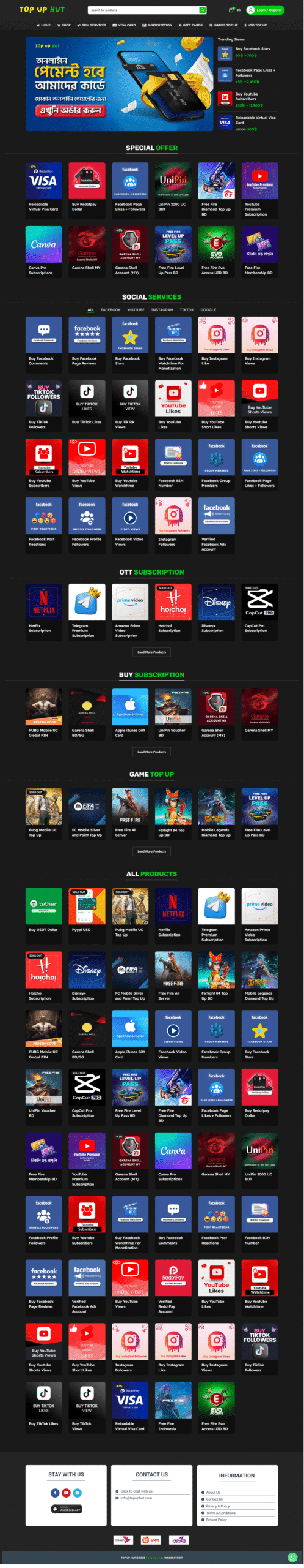 (Demo-6) Games TopUp, Visa, Gift Card, Digital Product Selling Ready Made Website Code