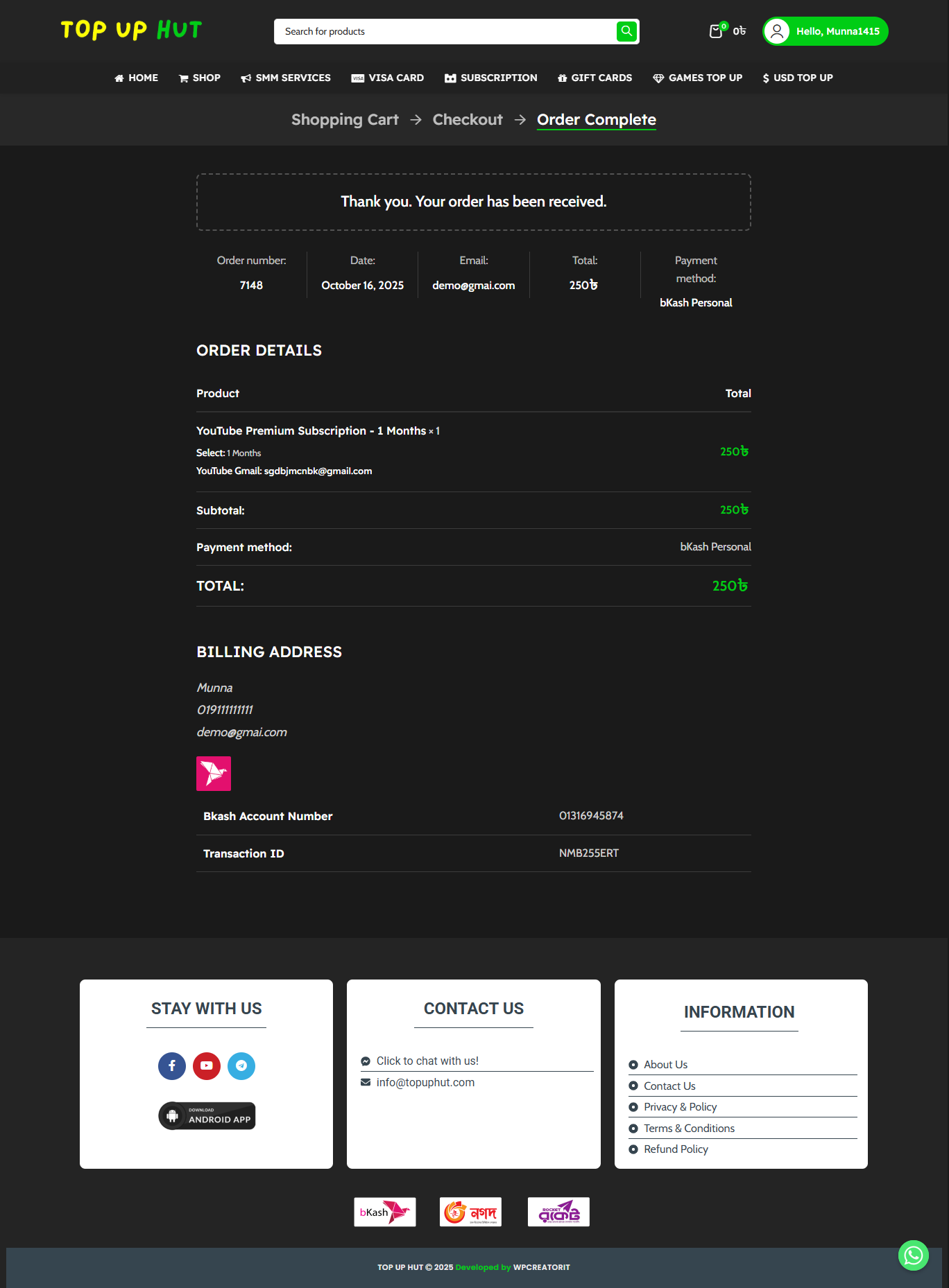 The best premade WordPress website backup file/code to make virtual visa cards, gift cards, and gaming topup websites. Your user can buy items from this site and you will get an email after placing the order. And your user also gets an email if his order is approved.