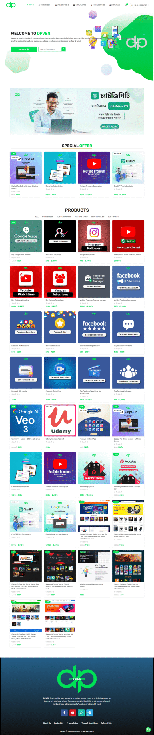 (Demo-7) Digital Product, Games TopUp, Visa, Gift Card, Selling Ready Made Website WP Code